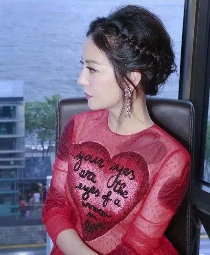 你也可以把剩下的头发卷起来,就像赵薇的发型一样,混合了编织和卷发的元素,显得大方而端庄。