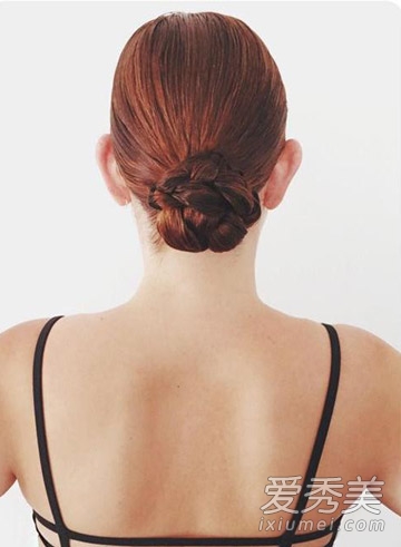 第五步:最后,用头发的尾部在结周围画一个圈,然后用发夹或发绳固定。这就完成了肉丸头。