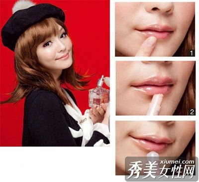 3.涂抹浅色唇彩,增加光泽。中心可以加强涂抹,使唇型更加立体。