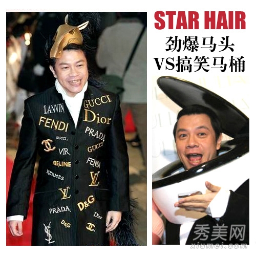蔡康永是金马奖和金钟奖的固定主持人。他的出现总是让人期待在这两个台湾最大的颁奖典礼上。在2003年台湾金马奖上,蔡康永以其惊艳的外表,确实让所有人刮目相看。蔡康永不仅把所有的名牌展示在顶部和底部,而且在他的头上还得到了一个“金色马头”的形状,把黑色的头发和“马鬃”结合在一起,这确实符合金马奖的意境。