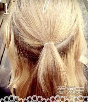 第一步:将头发分成上部、中部和下部。先用橡皮筋把上面的头发扎起来。