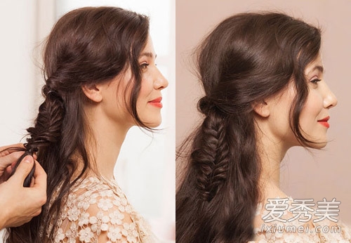 1.如图所示,在左边取一缕头发,并把它卷到右边。然后用发夹固定它。