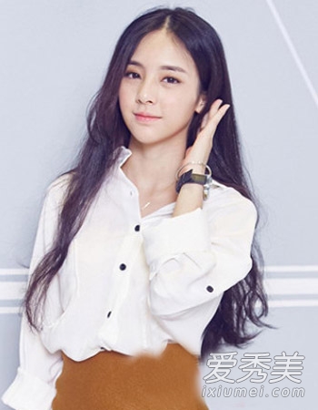 这是时尚中最通用的款式,深棕色的头发颜色清新,侧面是简单的直发,增加了椭圆脸女孩的温柔气质。