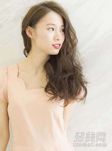 小编辑点评:侧面的斜刘海遮住了宽阔的颧骨,配以自然的棕色卷发,达到面部化妆的效果。