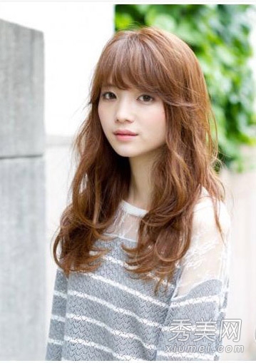 小编辑点评:空齐感刘海烧掉内扣的弧度,蓬松包裹小胖脸。光滑的长卷发美丽动人,气质指数瞬间上升。