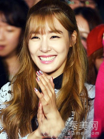 这种刘海倾斜的长发是刘汉MM的最爱。长长的斜刘海遮住了小半边脸,使脸变得又瘦又整齐,加上棕色的头发,使红润的好脸色更加红润。