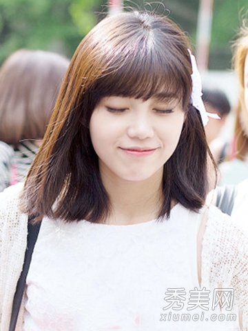 简单的小而新鲜的齐肩式发型是一种适合中国女孩的甜美的面部发型。短斜刘海轻盈优雅,味道甜美。