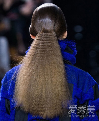 不要坚持认为小米烫发只能用来增加头发的蓬松度。像这样的小米外烫发也能创造出一种具有强烈对比效果的半束发风格。