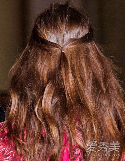 从耳朵后面取少量的头发,把它变成极细的辫子,并把头后面的两根辫子合在一起。如果你想要一个更加立体的半束发,你必须注意调整后脑勺头发的蓬松度,这样才能有一个平滑的头型。