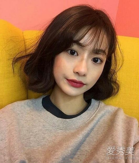 新鲜学生的头,短短的直发刚好盖住脸颊,这种留着整齐脸蛋的短发很受小脸蛋妹妹的欢迎。