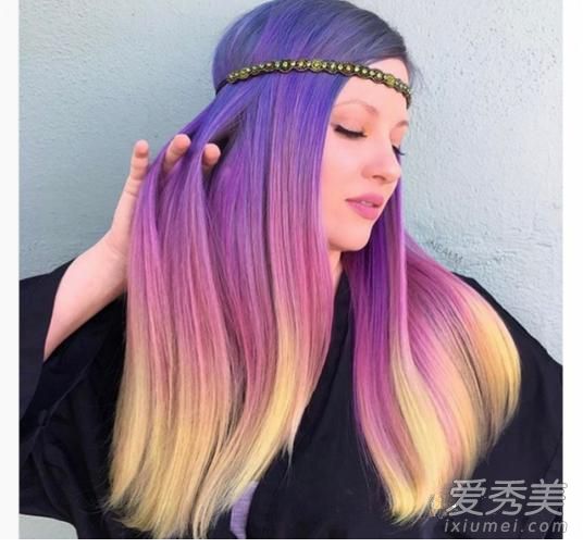 这种变色染发剂的优点是,原来染过的颜色可以非常好看,比如彩虹会逐渐变色。