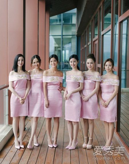 李小璐的婚礼可以说是“泰迪姐妹”的集中营。他们都是她最好的朋友。伴娘的发型都很清新甜美。浅蓝色连衣裙也是一个亮点。