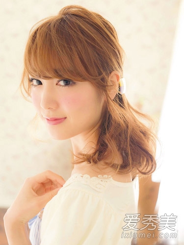 轻盈的刘海空充满空气,修饰脸部,展现完美的脸型。侧马尾辫慵懒随意,感觉甜美。