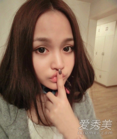 韩国人齐肩的梨形发型,胖乎乎的圆脸藏着小半边刘海中,加上天生的发色和斜刘海,整个人立刻显得很知性婉约。
