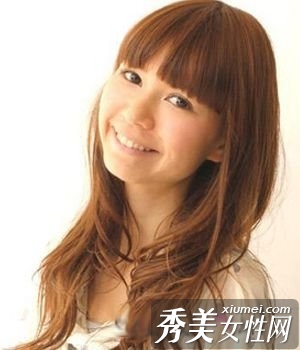 整齐划一的刘海很可爱。看起来没有明显层次的长发实际上在头发末端进行了稀疏处理。自然的微体积使它可爱起来。光滑的巧克力色增加了甜味,给人一种小公主的感觉。这种发型适合头发少的女孩,效果会更清新。