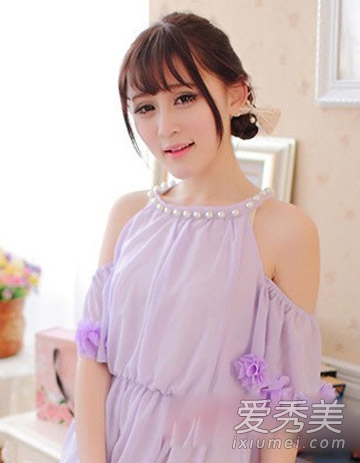 这也是一个纯洁可爱的女孩的整洁的刘海发型,非常适合学术风格。它采用简单清新空齐的齐式刘海造型设计,而搭配简单的长发半束式发型设计则更为纯粹和淑女。