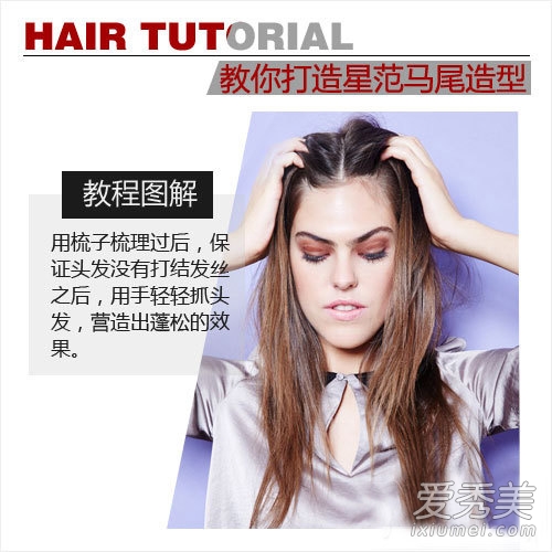 第四步:刮完所有碎片后,慢慢梳成蓬松的马尾辫,外观光滑,内部蓬松。