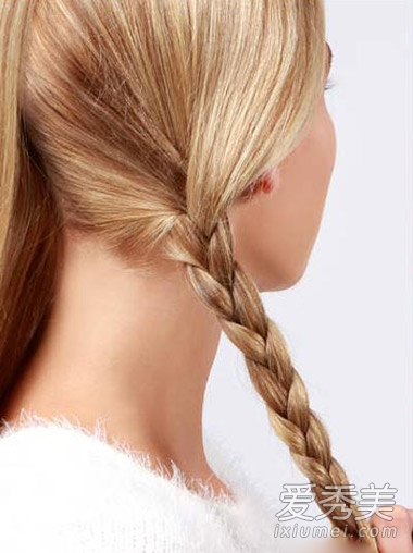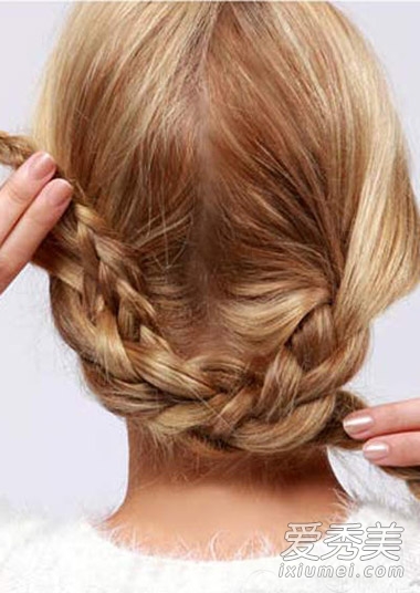 第三步:首先在脖子上交叉两根辫子。提示:不要拉紧你的头发,只是松松地交叉。