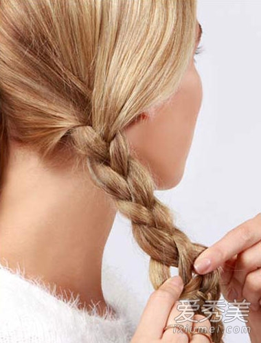 第二步:用手指松开编织的头发,以产生某种重量感。