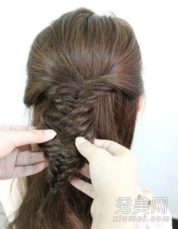 第五步:现在轻轻拉一下编织的鱼骨边,它会看起来很有层次感!