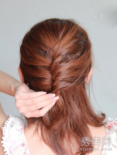 用橡皮筋固定后颈顶部。