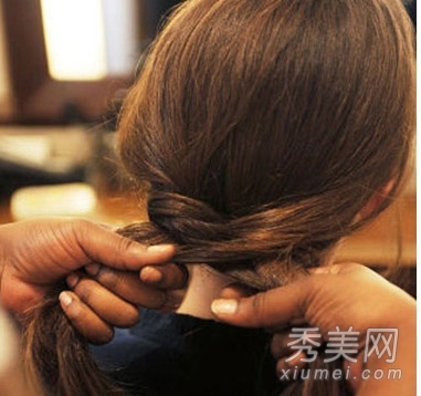 将头发编到末端,留下大约8厘米的长度,用橡皮筋绑起来。