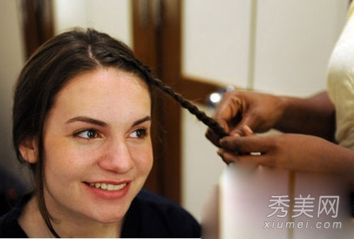 沿着前额的发际线,两边留出的长刘海被编织成一根细辫子。