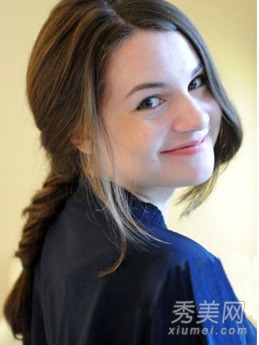 把鱼尾辫拧成一个大辫子,然后在一只耳朵后面把它拧成一个发髻,用一个细发夹固定住。