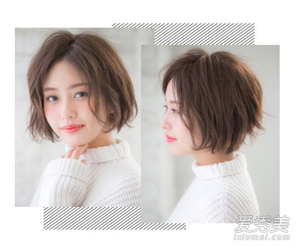 简单的短发在各个方面都很甜美。倾斜的刘海和两边的头发被用来修饰脸型,创造出一张漂亮的小脸。棕色的发色不仅能让造型更时尚,还能让皮肤看起来更白嫩。