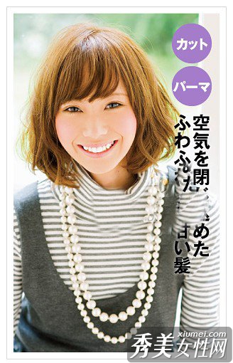 将厚重的围巾和毛衣织成可爱的BOBO卷发,看起来更轻。头发的下摆略微收缩,烫发充满弹性。