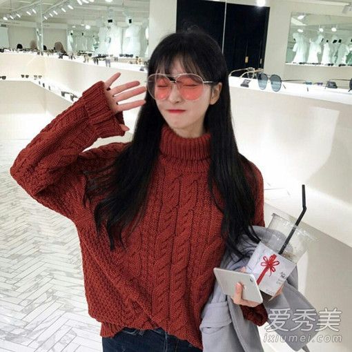 长卷发和+0+气体刘海的结合也是减少年龄的关键。冬天,自然的黑发颜色会让你的气质翻倍,而穿单色毛衣就更让人惊艳了。