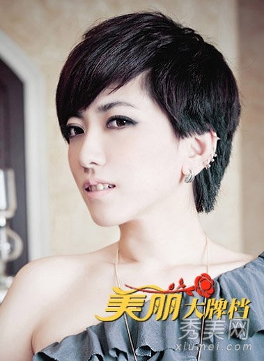 留着中性且干练的短发,发型师想突出刘新爽的一面。设计师为她的眉毛设计了一个浓眉。眼线贴近眼睑勾勒出眼睛轮廓,充分发挥了双眼皮的优势。较低的眼线是深灰色,类似于小烟妆的效果,突出眼睛的外观和野心。为了突出中性的一面,不使用太明显的腮红,唇彩也选择了接近嘴唇颜色的浅肉色,尽可能自然,以便将妆集中在眼睛上。