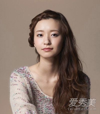 前额的刘海沿着头的形状编织成精致的辫子,露出完美的面部线条,长长的卷发在一边摆动,充满女性气质。