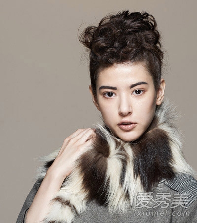 头发编成精致的发辫后,高高盘起,露出光滑的前额和完美的面部线条,显示出硬朗的气质。