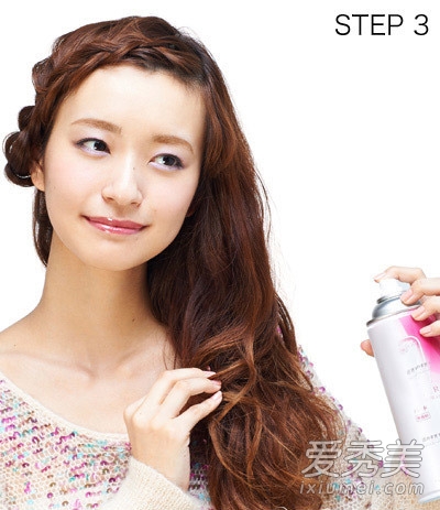 第一步:去掉前额的刘海,编成蓬松的辫子,然后固定。