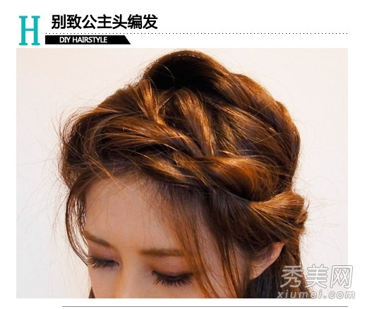 第七步:从右边取出一束头发,向内拧几圈,然后绑在辫子上。甜美的韩国发式结束了。