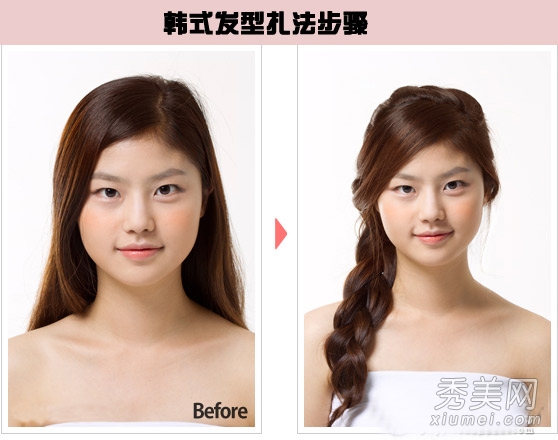 让我们来看看扎头发前的对比效果。单调的直发变成甜美可爱的侧辫不是很可爱吗?