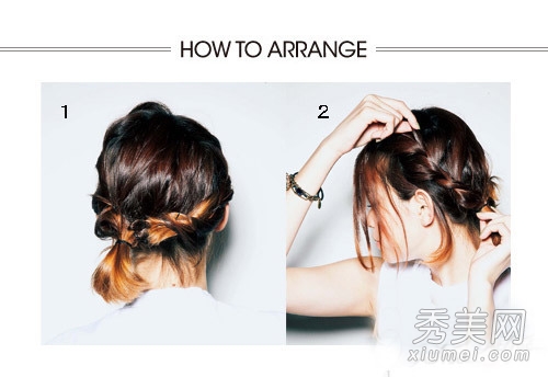 第一步:从两边拿出一束头发,把它编成辫子,固定在脑后。