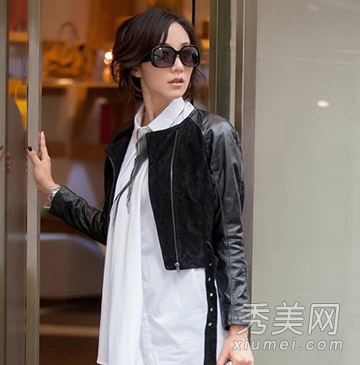 冬天,当你上街时,你的衬衫和皮衣是温暖而帅气的。圆形头发的宽松太阳镜绝对是标准。