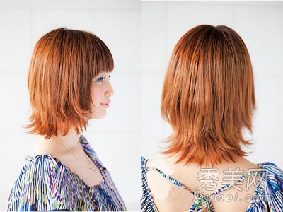 另一个流行的女孩的时尚短发,直发,创造了一个柔软的直发效果,与直刘海完全覆盖,精致的小脸颊立即出现,橙色的头发颜色,发梢轻轻向外倾斜,大气是体面的,聪明和小女人味,美丽和迷人。