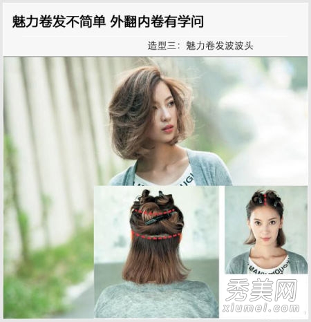 要点:相同的卷发造型方法被分成不同的区域。不同类型的卷发棒用于将头发修剪成浓密的卷发,具有每日微卷发的效果。