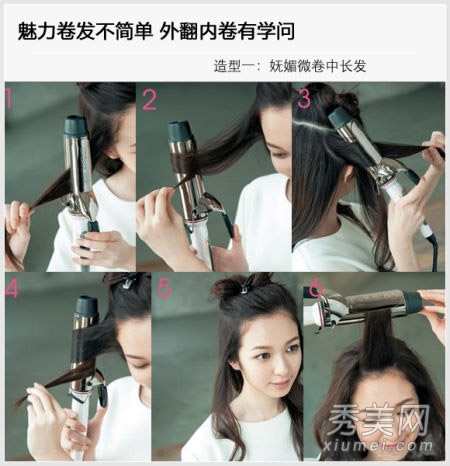 要点:根据上、中、下三个区域,借助一个38毫米大小的卷发器,两边头发、后脑勺和前额刘海依次卷曲。