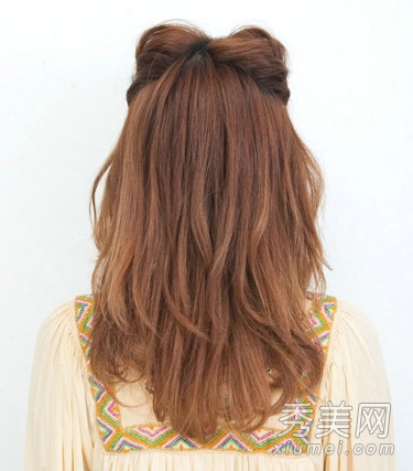 从后面看,头发松散,形成蓬松的双猫耳。