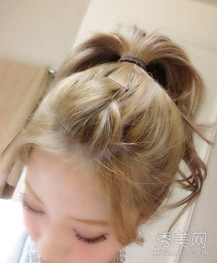 第二步:之后,抓住所有的头发,把它绑得高高的。