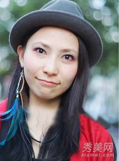 简单扭曲的马尾辫、轻盈弯曲的刘海和时尚的黑色帽子营造出独特的异国情调。