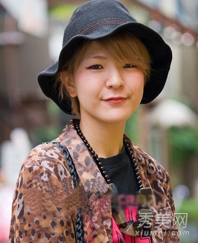 金色短发和黑色荷叶帽的醒目组合是非主流的,充满味道。