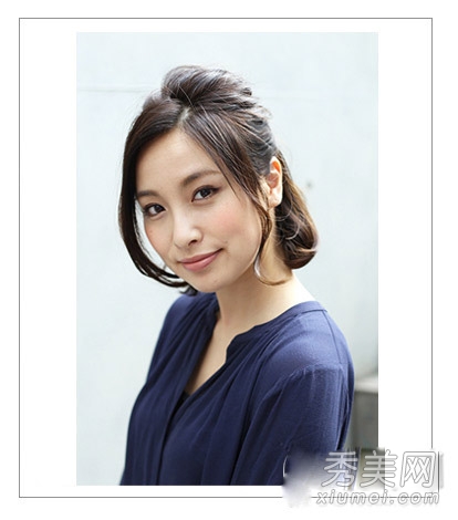 侧面离脸的斜刘海有修饰脸型的作用,没有过多修饰的半束发比较简单大气。