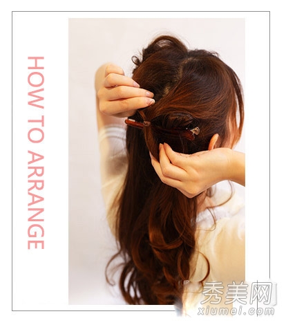 第一步:把头发分成上下两部分,然后把上面的头发分成四部分,用大发夹固定。