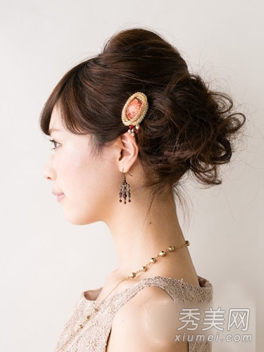 积极的影响。配菜的头发蓬松华丽,搭配华丽的发饰更显甜美气质。