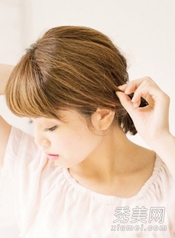 第一段:轻盈的刘海修饰脸型。简单的马尾加上蝴蝶结头巾既甜美又充满活力。